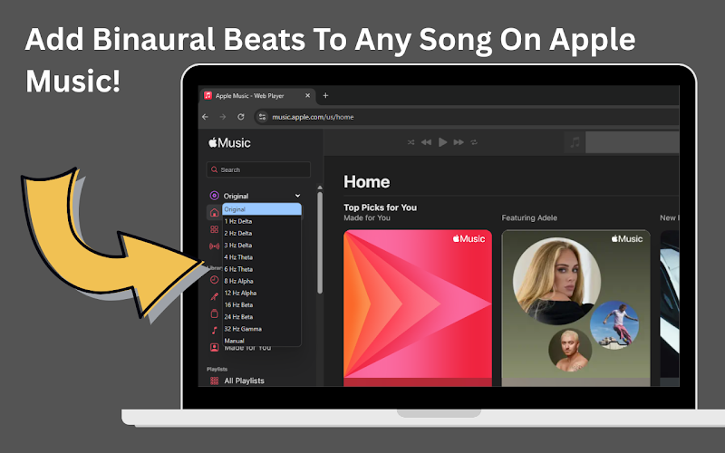 - Real‑Time Re-Tuning: overlay binaural beats onto any YouTube, Rumble or Apple Music track. Instead of switching playlists, you can keep listening to the artists and genres you love while benefiting from brain‑wave entrainment.